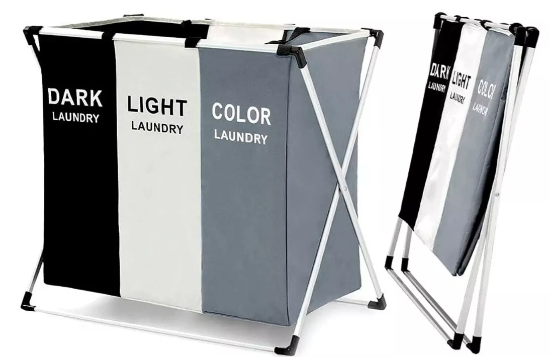 Buena Calidad La canasta para Ropa Plegable de alta calidad está hecha de tela oxford de alta calidad, muy duradera, transpirable, impermeable, resistente al calor. -Función de Clasificación El saco para ropa sucia tiene 3 compartimentos para separar la colada fácilmente, la ropa se puede clasificar en color claro y el color oscuro le brinda mayor eficiencia al lavar la ropa. -Marco de Aluminio Cesto de la ropa diseñado a partir de un marco de aluminio desmontable y ensamblado y una bolsa de material duradero para ser liviano pero duradero. El marco de aluminio “X ” Diseño se pliega fácilmente para guardarlo cuando no utilizar. -Estable y Fácil de Llevar Cesta para Ropa Plegable 6 correas en la parte superior son buenas para la estabilidad. Las correas de velcro son fáciles de poner y quitar y hacen que la bolsa de lavandería sea fácil de transportar. -Ocasión Cestos para Lavandería de Lona, duradero para uso frecuente en su dormitorio, cuarto de lavado, baño, o en el armario, etc. Se puede usar para poner ropa, juguetes, etc.